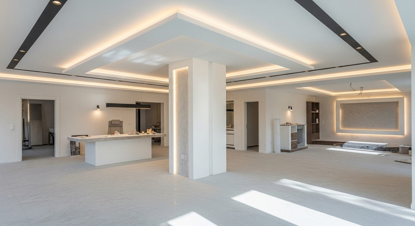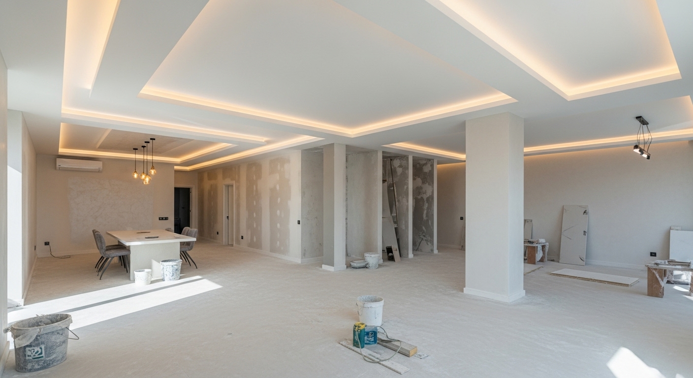 Ev, ofis ve ticari alanlarda alçı sıva, alçıpan, asma tavan ve dekoratif uygulamalarla yaşam alanlarını modern ve şık hale getirir.